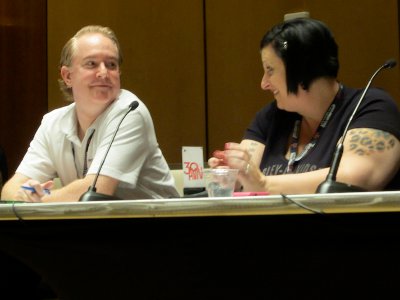 Seminars started early, shedding light on marketing, multimedia and how performers can augment their income when they’re not filming. The seminar called “The Importance of PR and Marketing” played to a packed house. PR professionals Kristen Tibby of Pleasure Chest, Masque President Michael Guilfoyle, YNOT Vice President Jay Kopita, Brian Gross of BSG PR and Erika Icon of The Rub PR composed the panel, which was moderated by Hodder Media founder Ann Hodder. Panelists agreed that even in slow economic times — maybe especially then — public relations is integral to the success of any commercial endeavor. They also stressed the importance of communication with clients, vendors and consumers; what a publicist or marketing professional should offer, and how to measure the performance of a campaign.