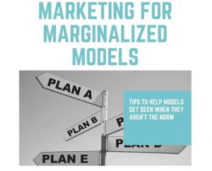 Marketing for Marginalized Models is designed to help models who find themselves struggling when trying to follow more traditional advice. It covers a wide variety of topics ranging from networking to setting realistic goals and is viewed through a lens of marginalization.