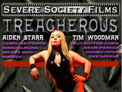 Treacherous, co-directed by Severe Society Films co-owner Dee Severe and director-performer Aiden Starr, explores behind-the-scenes plotting and power plays at an underground sex club. In addition to Starr and Severe, other players — including Tim Woodman, Caroline Pierce, Nikki Darling, Mickey Mod, Dana DeArmond, Kiki D’Aire, Charli Piper, Jay Taylor, Jessie Parker, Maia Davis and Ruckus — engage in explicit BDSM action.