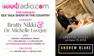 LOS ANGELES, CA – Award-winning erotic artist Andrew Blake will share his views about art and pornography, and that which blurs or divides them, when he guests on iWantEmpire’s new sex talk show, iWantRadio from 5 to 6 p.m. ET on Friday, June 15. The broadcast, hosted by Bratty Nikki and Dr. Michelle Lovejoy, airs on SiriusXM Channel 415.