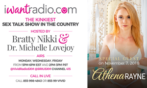 Fast rising adult star Athena Rayne will discuss her journey from rags to riches when she guests on iWantRadio from 2 to 3 pm Pacific Time today, Wednesday, November 7. The broadcast, hosted by Bratty Nikki and Dr. Michelle Lovejoy, airs on SiriusXM Channel 415.