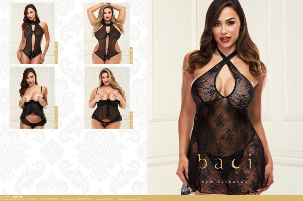 The new items in Baci’s White Label Collection offer eight seductive ensembles comprised of soft, stretchy lace in stylish designs which accentuate the wearer’s attributes. There are sensual teddies, peek-a-boo pieces, and playful mini dresses, all designed to hug every curve comfortably. In line with Baci’s missive to ‘celebrate every woman’, each style comes in all sizes from small to queen.