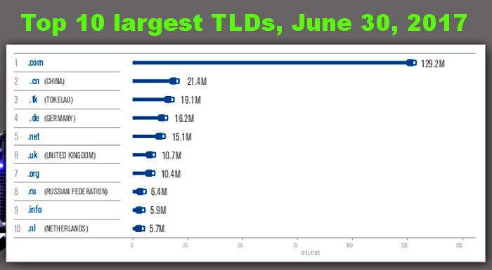 RESTON, Va. – The .com and .net domain spaces may be growing long in the tooth, but they remain by far the most popular on the internet, according to second-quarter 2017 statistics released by Verisign.