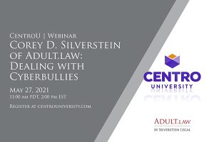 Cyberspace — Corey D. Silverstein, the driving force behind MyAdultAttorney.com and Adult.Law, will lend his expertise and insights during an exciting collaborative webinar event with CentroUniversity.
