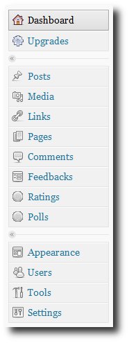 The second block of features adds “macro” control to the website. Appearance allows management of such things as graphic design, typefaces, CSS and widgets, which are third-party controls that add extra functionality to the site.
