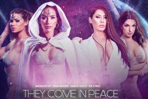 “They Come in Peace” refers to beings from another planet who arrive on earth and they aren’t just coming in peace, they’re coming to fuck. Landing in the desert, a small group of clandestine government officials gather to investigate its motives. They have no idea what to expect, but they are pleasantly surprised with sexy results all around.