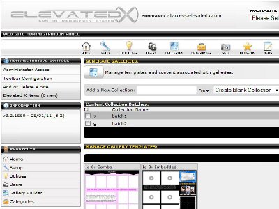 With just a few mouse clicks, an Elevated X CMS user can bulk-generate dozens or even hundreds of gallery pages using different content and template designs. CMS-generated galleries feature different photo and video formats for standard desktop, tablet and mobile viewers.