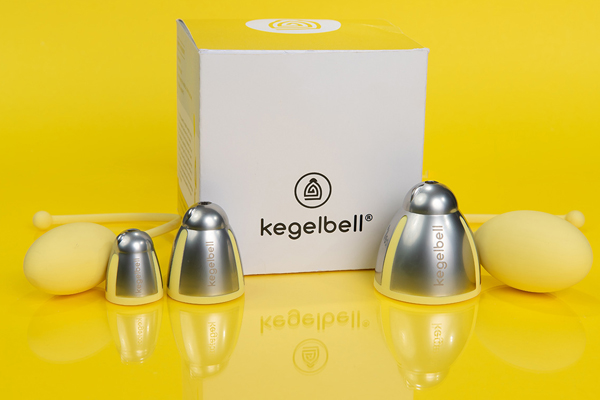 The Kegelbell system is FDA registered and works like no other kegel exerciser on the market. Rather than a traditional set of insertable internal weights, Kegelbells hang outside of the body and stay in place via a comfortable silicone bulb that is worn inside of the vagina. Each set comes with two different sized bulbs that attach to three stackable weights, offering 8 to 16 training levels ranging from 30 to 250 grams, allowing users to level up – and up and up and up – as strength and endurance increases.