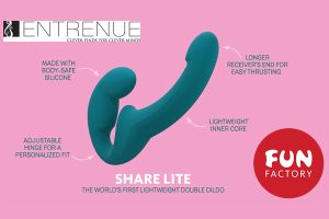 “We’re always excited to see what FUN FACTORY comes up with and the Share Lite is a big deal,” Entrenue CEOwner Joe Casella said. “So many users are drawn to double dildos and strapless strap ons only to end up disappointed when the toys are too heavy to comfortably use without a harness. The innovative design of the Share Lite is sure to thrill shoppers, and it’s made by FUN FACTORY so retailers know it’s a product they can trust. This is truly a product that customers have been waiting for.”
