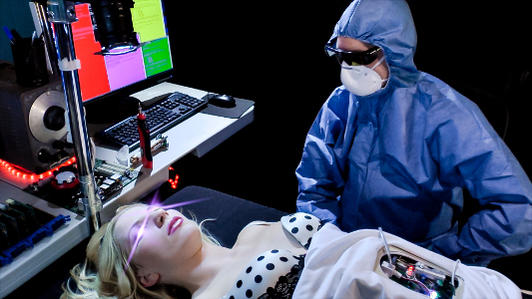 There are two scenes that stand out the most to me. The first was the creation of Ashley 3000. For that we used a split screen so I could play both Dr. Fires and Ashley 3000 in the same scene. That was tough, having to do the exact same movements while watching playback and interacting with myself, but it turned out fantastic and everyone loved it.
