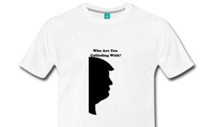 The shirts simply say: “Who Are You Colluding With?” and feature silhouettes of characters in involved in the proposed scandal.