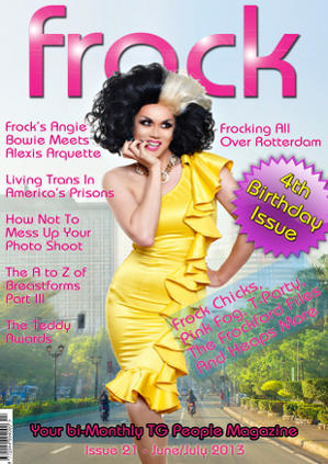 As far as we can tell, Frock is now the most widely read bi-monthly, transgender-related magazine in the world, bar none, and as the word gets around, the numbers continue to rise at an alarming pace. I guess the fact that Frock is a free magazine probably helps, whereas our nearest rival is charging something like $15 an issue.