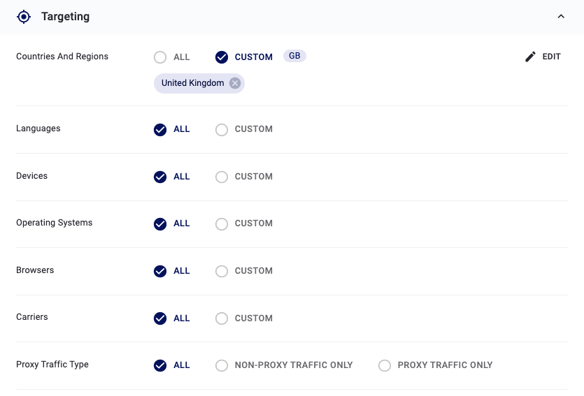 Targeting Options: Select the targeting options that align with your campaign objectives, including country, language, device, and more.