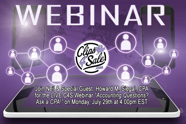 The Clips4Sale Accounting Zone will feature Clips4Sale owner Neil and esteemed CPA and co-founder/managing partner of SD Associates Howard M. Siegal. Howard specializes in business and tax planning. During the informative webinar, Howard and Neil will be covering a lot of ground and discussing issues related to taxes, 1099s, business accounting and financial records keeping, investment basics, and much more. As with all the webinars, they will be taking questions throughout. Attendees can submit their questions in advance on the Clips4Sale blog or come prepared with questions you’d like to ask during the webinar.