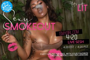The Sexy Smokeout will take place in two parts on April 20, 2020. The first free session will take place at 4:20pm EST and the second will take place at 4:20pm PST. Everything will take place on the front landing page at IsMyGirl.com.