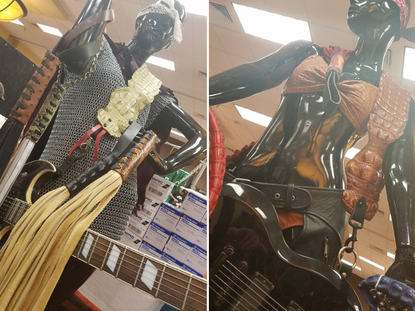 MAYER, Ariz. – Justin Sayne, whose eponymous leather fetish collection charmed the erotic accessories market, has expanded his line to include high-end stage gear with the same avant-garde flair. The first items — guitar straps and microphone stands made of exotic crocodile skin in vibrant colors — debuted at the NAMM Show in Nashville this summer.