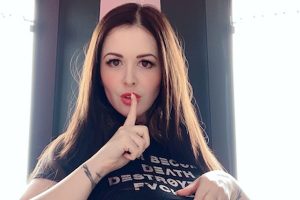 Larkin, along with Meana Wolf and Alex Coal, gives top kink fans around the world tips and advice and explains the allure of the naughty niche in “Listen Up, Jerkoff! The Joy of JOI.” The online piece covers pertinent topics like getting in the zone, increase in interest and content for JOI, roleplay, scripting, and storytelling, countdown and gamification, materials for couples, and more. Larkin also has a large photo of her in a fanboi tee with lots of underboob and a strappy pair on panties winding around her perfect physique.