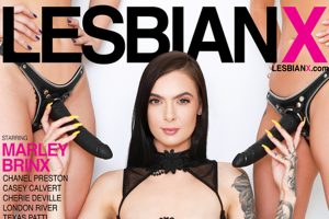 Lesbian X,O.L. Entertainment’s lesbian studio, explores threeway sex featuring intense strap-on double penetrations in “Lesbian DP 2,” starring luscious cover model Marley Brinx. The movie is now available on DVD.