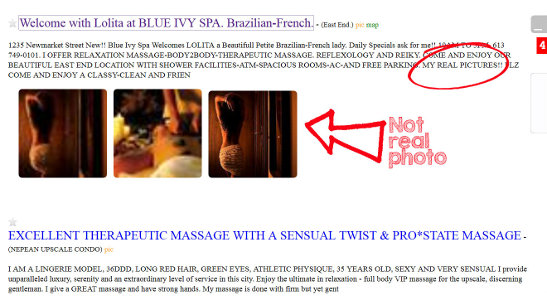 Bait-and-switch is bad for all involved. It’s bad for the clients because they can become jaded and skeptical of any ads they see if they’ve been mislead a few times, or even once. It’s bad for providers — the honest ones — because they have to work harder to prove themselves. While they’re using real photos of themselves, they’re competing with stolen, Photoshop-ed professional images of women who’ve got a team of stylists, makeup artists, lighting techs and photographers behind them.