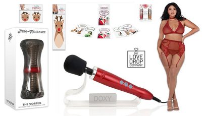 The February/March couples Date Night box ($64.99) – also available with Seven ‘til Midnight black lacy lingerie ($89.98) – features two pleasure products, chocolates, Screaming O’s Color Pop vibrating ring and Jackits throttle stroker pleasure ring, flavored lube and Creative Kisses ‘101 Unique Ways to Kiss Your Lover’ guide.