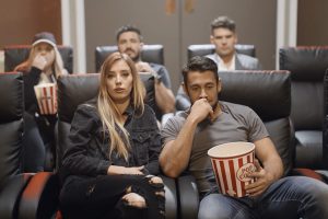 Dante’s other scene on the iconic site is for the Why Not Bi series. “CineCum” takes movie watching to a new level as Dante puts his cock through a hole in the popcorn bucket for his girlfriend, Haley Reed, to touch. But a sexy stranger, Malik Delgaty, gets in on the action and makes Dante cum. When Dante gets up to go to the bathroom, Haley doesn’t realize she’s stroking the stranger’s cock. This leads to a wild and hot threesome right in the movie theater. See the preview and member’s only scene at Men.