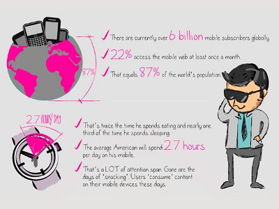 - The average American spends 2.7 hours per day using his or her mobile device.