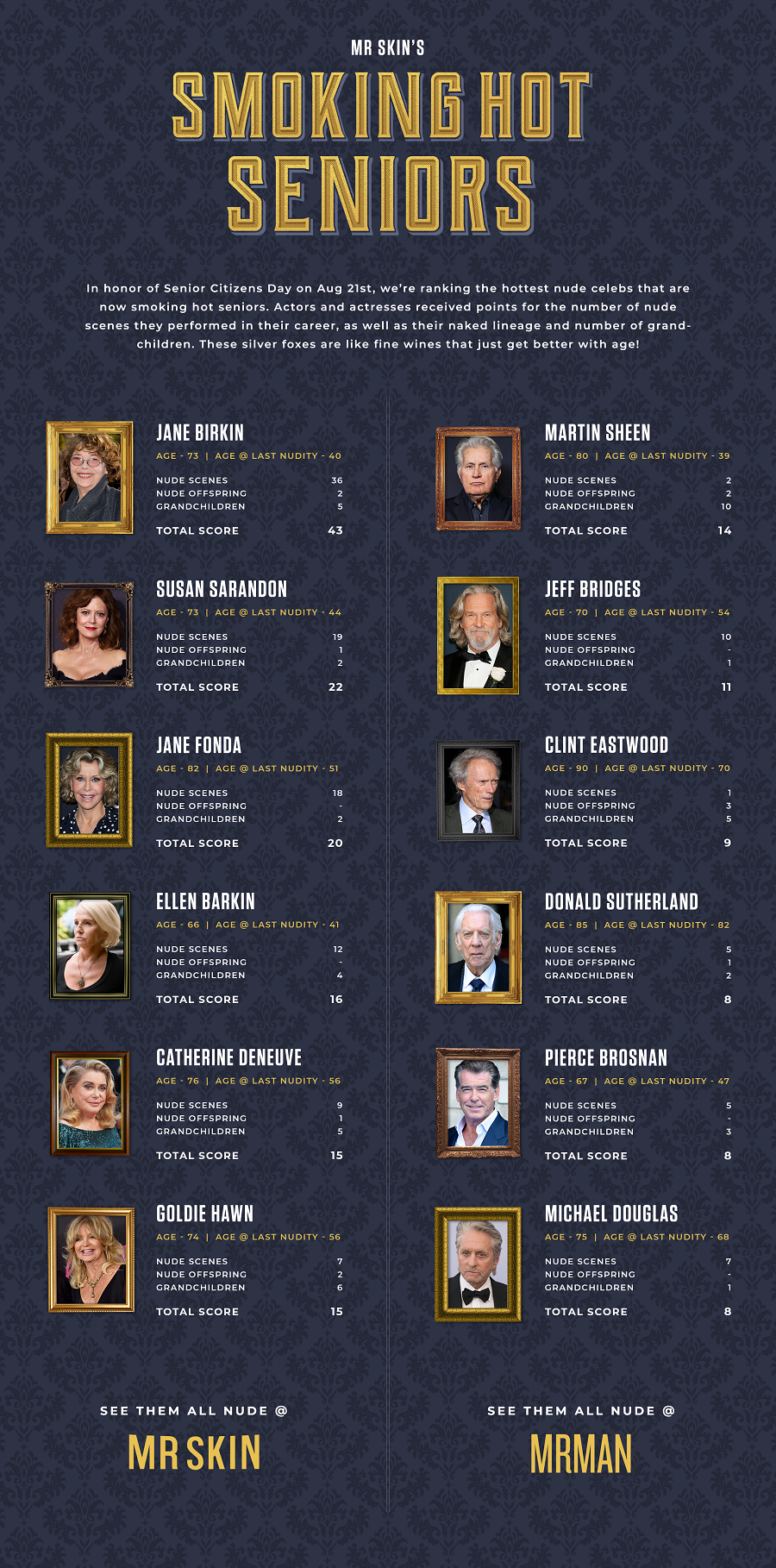 Welp, the folks at Mr. Skin apparently because they have taken the opportunity to rank mainstream cinema’s “Hottest Senior Citizens.”
