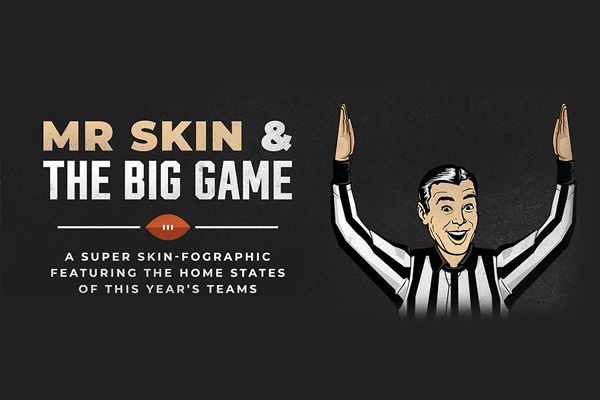 “We compiled a Super Skin-fographic that spotlights Missouri and Florida – the home states of this year’s competing teams – and ran with it, giving fans a sneak peek into Super Bowl’s most skin-ful moments!” said a Mr. Skin rep.