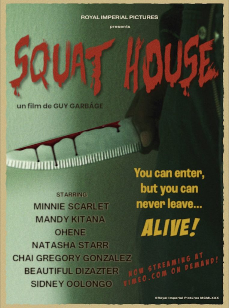 Produced by neo-grindhouse production company, Royal Imperial Pictures, Squat House is now available for streaming at vimeo.com/ondemand/squathouse accompanied by a “revealing” behind the scenes short film.