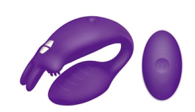 The Beaded D.P. Rabbit incorporates not only the traditional bunny “ears” for stimulating the clitoris, but also a curved shaft for targeting the G-spot and built-in anal beads.