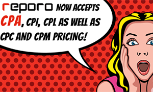 Cyberspace – REPORO is proud to announce that we now accept CPA, CPI and CPL pricing on our 2 Billion clicks p/m Pop-Under Network alongside existing CPC. This opportunity is the first of its kind where an Ad Network supplies the most direct CPA in the market – guaranteeing great value for money for our clients and greater returns for our publishers’ Mobile traffic.