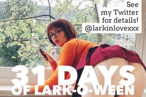 For her birthday month, Love will also be doing super spooky Halloween-themed and cosplay cam shows live on MFC at CamWithLarkin.com. Check her live Twitter feed at @larkinlovexxx to find out her camming schedule.