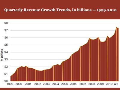 According to David Silverman, a partner at PricewaterhouseCoopers LLP, “The year-on-year 23-percent increase in first quarter revenues is not just impressive in its own right, but especially so when you take into account the fact that 2010 was a record-breaking year itself for internet advertising revenue. These numbers indicate that the interactive advertising field hasn’t simply bounced back since the recession — it’s growing with dynamic energy.”