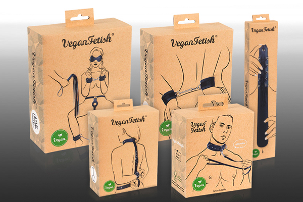 The five products in the Vegan Fetish range include: a restraint set, handcuffs, a five-piece bondage set (blindfold, flogger, strap-on string, handcuffs and ankle cuffs), a collar and leash set and a paddle.