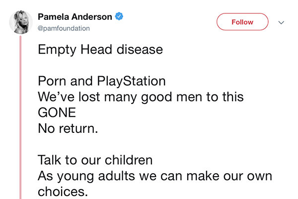Here is a link to the original tweet, which reads: “Empty Head disease, Porn and PlayStation, We’ve lost many good men to this, GONE, No return. Talk to our children, As young adults we can make our own choices. But, it’s a slippery slope. I [pray emoji] kids can be brave, rebel against it all. Nightmare.”