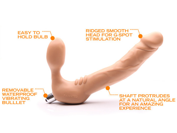 One end of the device is designed to be held by the PC muscles, allowing strap-free use while holding the shaft at the same angle an erect penis displays. The design allows skin-on-skin contact. As a bonus, the device includes a single-speed, removable, waterproof bullet vibrator for the wearer’s pleasure.