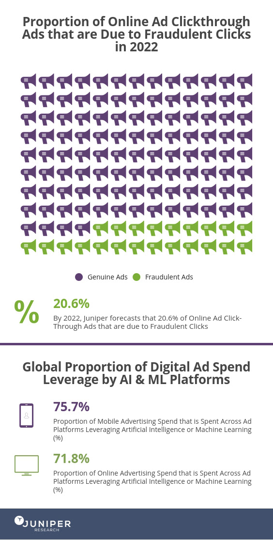 The research predicts platforms leveraging AI for targeting purposes will account for 74 percent of total online and mobile advertising spend by 2022. However, as the adoption of AI becomes saturated, only platforms demonstrating the most effective algorithms will be able to charge premium ad rates.