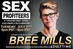 “I’m looking forward to speaking with SEX PROFITEERS and sharing my perspective on working in adult as a queer female director and show runner! It will be my Clubhouse debut,” said Mills.