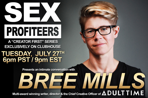 Joining Mills on the Clubhouse stage will be multi-award winning adult performers Dante Colle, Casey Kisses and Michael DelRay, who have been working with Mills on her latest projects. “After working with Bree on various types of projects this past year with most of them unreleased yet, I’m super excited for everyone to get the chance to tune in while we all talk about it live for the first time,” said Colle.