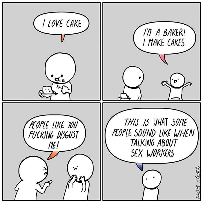 There is an underlying hypocrisy with people judging adult workers, but then turn around and go home to jerk off or release stress with sex, whether it’s with a partner or stranger. Sex is normal. Why is it ok to look at women in bikinis or go to a strip club, but performing actual sex or simulated sexual acts for income is a problem?