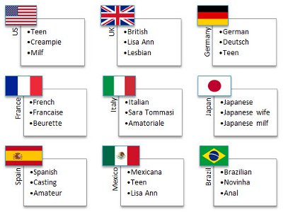 Among Pornhub’s global village, the top three search terms during 2013 were teen, MILF and compilation (which displaced anal from 2012’s No. 3 slot). Broken down by country, the top lists varied: Americans searched most for teen, creampie and MILF; Brits for British, Lisa Ann (presumably porn star Lisa Ann) and lesbian, and Mexicans searched for Mexicana, teen and Lisa Ann.