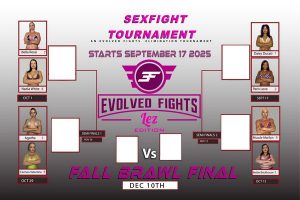 Every year, the Fall Brawl is one of the most exciting events on Evolved Fights Lez, with the top eight ranked sex fighters put in the single elimination tournament and all vying for the title of the Greatest Sex Fighter of All Time. Many adult stars have gone from performers to bona fide badasses after being in the tournament and even been inspired to give up bad habits like smoking and junk food to start serious training in martial arts. Some have gone on to become amateur fighters.