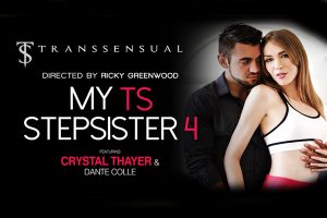 “My TS Stepsister 4,” opens with Peter (Roman Todd) and his stepsister (Melanie Brooks) who are watching TV when Peter realizes she is stroking her member, he decides to help her release some sexual tension. Next, after time apart Bill (Dante Colle) makes a surprise visit and sees his stepsister (Crystal Thayer) and they decide to recreate the night of passion they had before he left.