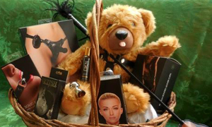 Teddy Love’s Kink-It Women’s Basket includes a high-quality Ouch exclusive collar and leash, leather cuffs, a solid ball gag, vibrating strap-on, satin love mask, and Eden lube. The basket also includes a kinky Teddy Love BDSM Bear, a Teddy Love Bear Paw tickler/slapper, and a Teddy Love butt plug. This basket retails for US $229.95.