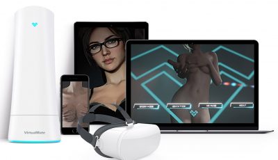 Virtual Mate’s online game subscription structure at VirtualMate.com will create the experience via a VR headset, PC, mobile device or tablet, and a male masturbatory sleeve called The Core, with a smart-warming system and high-sensitivity sensors that gather and transfer ‘motion data’ for the Mate to intuitively ‘react’ to.