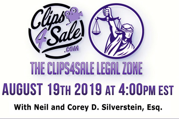 Clips4Sale Legal Zone is back for another installment on Monday. August 19th at 4pm PST/1pm EST. Clips4Sale owner Neil and attorney Corey D. Silverstein join forces to impart knowledge to models and producers. This time they have a special guest joining the discussion, and it’s attorney Lawrence Walters.