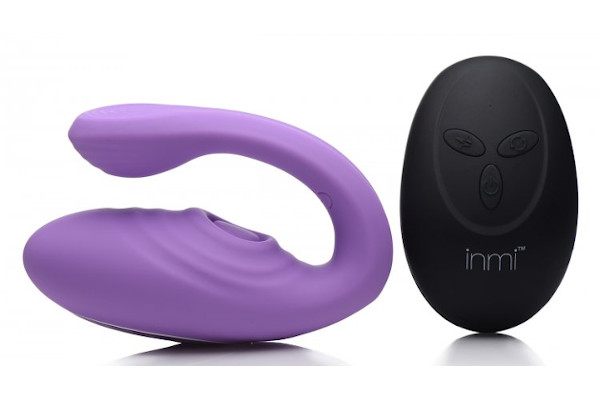 The 7X Pulse Pro Pulsating & Clitoral Stimulation Vibe with Remote is available in smooth purple silicone with ABS plastic accents. It is USB rechargeable with an MSRP of $79.95 and comes packaged in Inmi’s distinctive black and gold box adorned with the image of the product.