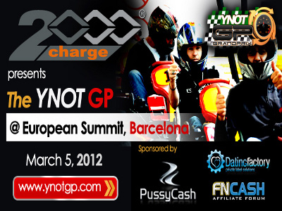 The YNOT Grand Prix Barcelona, presented by 2000Charge, is sponsored by PussyCash, Dating Factory, Traffic Force, FN Cash and RIVCash.