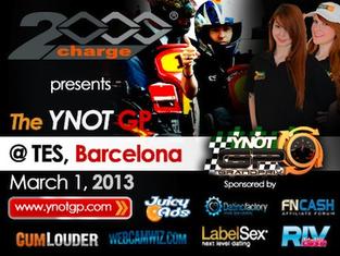 The Barcelona YNOT Grand Prix, presented by 2000Charge, is sponsored by JuicyAds, Dating Factory, FNCash, RIVCash, WebcamWiz, LabelSex and Cum Louder.